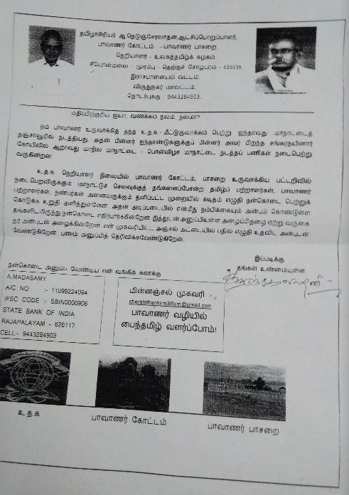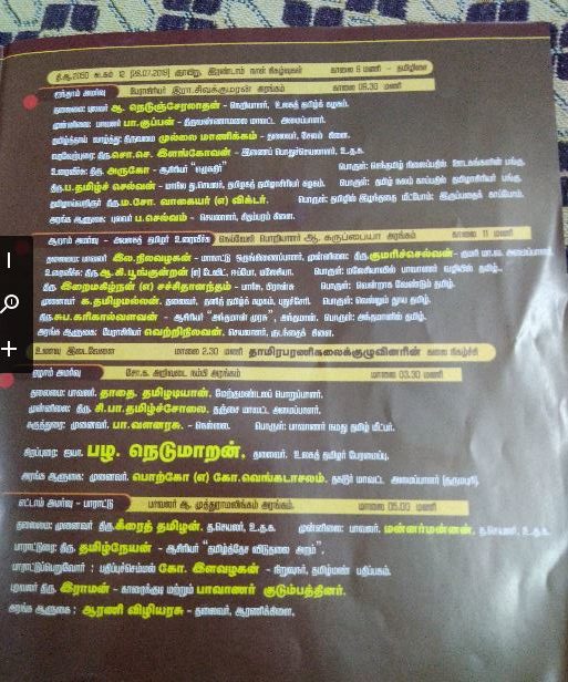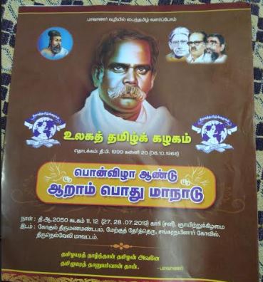 உலகத் தமிழ்க்கழகப் பொன்விழா , ஆறாம் பொது மாநாடு இலக்குவனார் திருவள்ளுவன் 15 July 2019 1 Comment ஆடி 11, 12-2050-சனி, ஞாயிறு -27,28.2019 கோகுல் திருமண மண்டபம், மேற்குத் தேர்த் தெரு, சங்கரநயினார் கோவில், திருநெல்வேலி மாவட்டம் மு.நெடுஞ்சேரலாதன், நெறியாளர், உலகத்தமிழ்க்கழகம் பேசி – 94432 84903 Topics: அழைப்பிதழ், கருத்தரங்கம், செய்திகள் Tags: ஆறாம் பொது மாநாடு, உலகத் தமிழ்க்கழகப் பொன்விழா, மு Related Posts கலைஞர் ஆயிரம் – கவிதாஞ்சலி