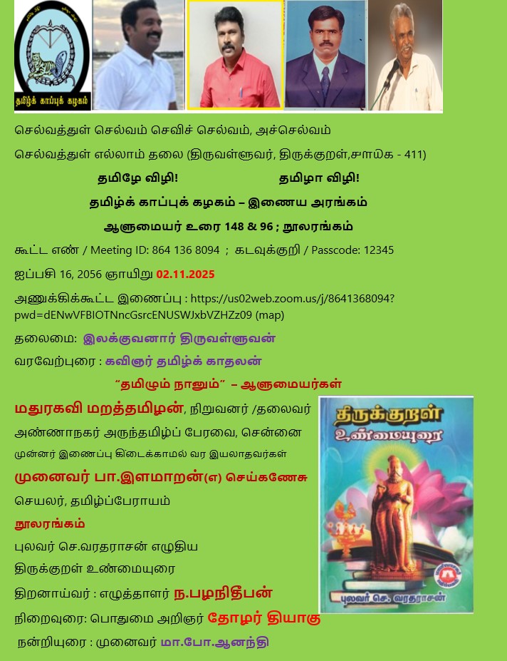 தமிழ்க்காப்புக்கழகம்-இணைய அரங்கம்: ஆளுமையர்உரை 148 & 96 + நூலரங்கம்