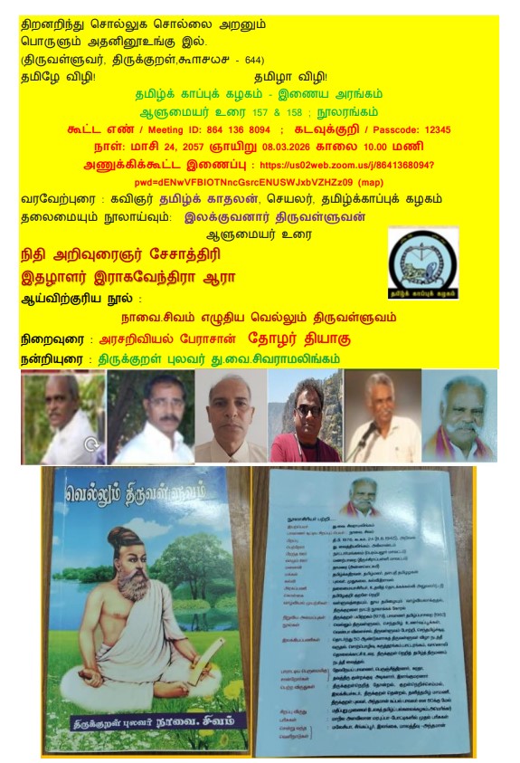 தமிழ்க் காப்புக் கழகம் – இணைய அரங்கம்; ஆளுமையர் உரை 157 & 158 ; நூலரங்கம்