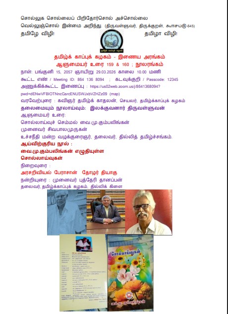 தமிழ்க் காப்புக் கழகம் – இணைய அரங்கம் – ஆளுமையர் உரை 159 & 160 ; சொல்லாய்வுகள் : நூலரங்கம்