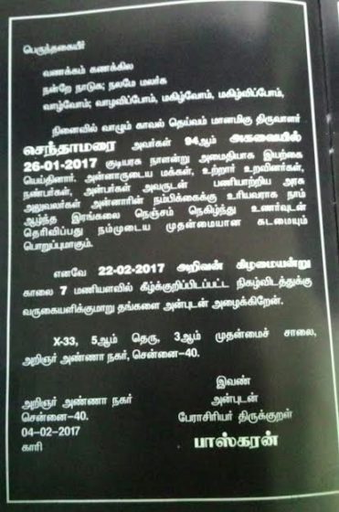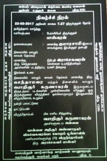 நீத்தார் நினைவேந்தல் – செந்தாமரை & கருணாகரன் இலக்குவனார் திருவள்ளுவன் 19 February 2017 No Comment Topics: அழைப்பிதழ் Tags: திருக்குறள் பாசுகரன், நீத்தார் நினைவேந்தல் - செந்தாமரை & கருணாகரன்