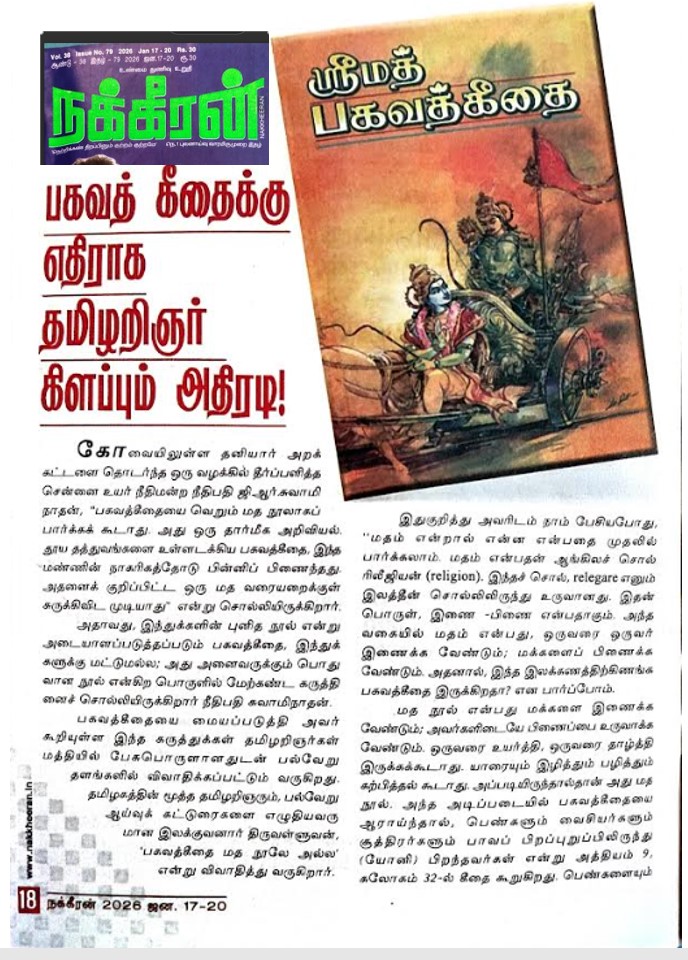 பகவத்து கீதைக்கு எதிராகத் தமிழறிஞர் இலக்குவனார் திருவள்ளுவன் கிளப்பும் அதிரடி, நக்கீரன்
