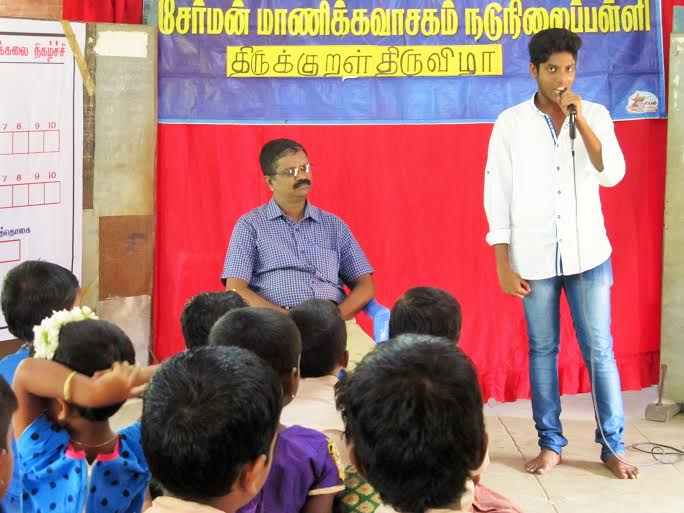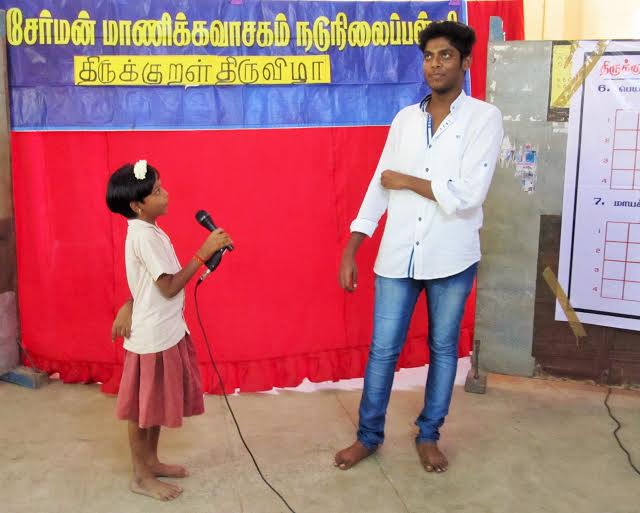 உதடு ஒட்டாத திருக்குறளை வாயில் உதடுகளில் குண்டூசி வைத்துக் கொண்டு சொன்னதைக் கண்டு மாணவர்கள் அனைவரும் வியப்பில் மூழ்கிப் போனார்கள்.