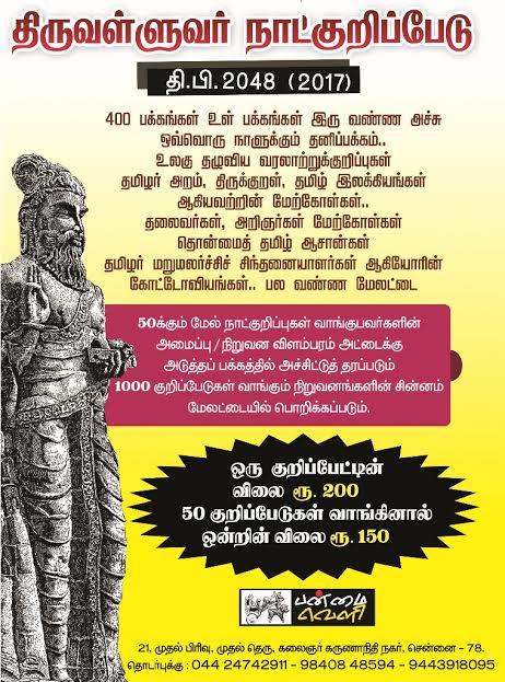 இதனைத் தொடர்ந்து வரும் 2017ஆம் ஆண்டுக்கான திருவள்ளுவர் நாட்குறிப்பேடு (Dairy), தற்போது சிறப்பான முறையில் உருவாக்கப்பட்டு வருகின்றது.
