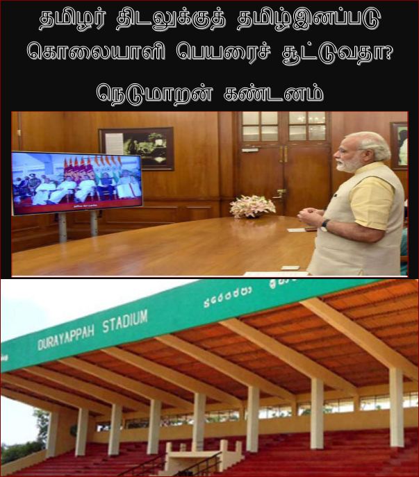 யாழ்ப்பாணத்தில் உள்ள பொதுத் திடலுக்கு ஆல்பர்ட்டு துரையப்பா என்பவரின் பெயரைச் சிங்கள அரசு சூட்டி, இந்தியத் தலைமையளார நரேந்திரர்(மோடி)யைக் கொண்டு அந்தப் பெயர் பலகையைக் காணொளிக் காட்சியின் மூலம் திறக்க வைத்துள்ளது. சிங்கள அரசின் சூழ்ச்சிக்கு இந்தியத் தலைமையாளர் இரையானது வருந்தத்தக்கதாகும்.