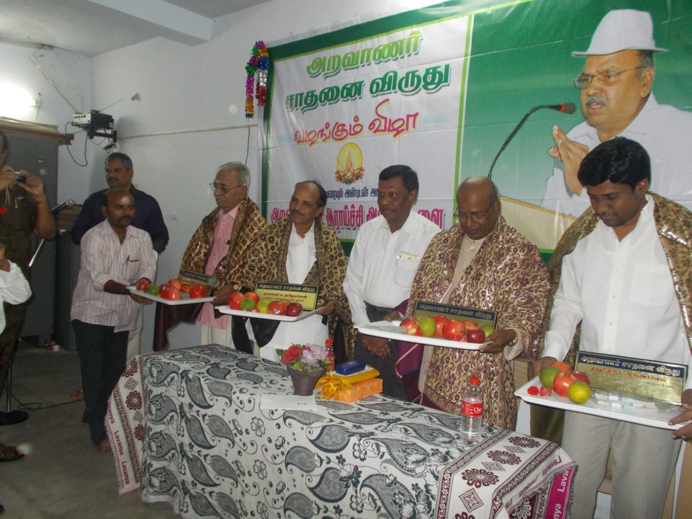 மனோன்மணியம் சுந்தரனார் பல்கலைக்கழகத்தின் மேனாள் துணைவேந்தர் பேரா.முனைவர் க.ப. அறவாணன் (பிறப்பு: ஆடி 25, 1972/ஆகத்து 9, 1941) தம் பிறந்த நாளில் ஆன்றோர்களையும் சான்றோர்களையும் விருது அளித்துப் பாராட்டி வருகிறார். இவ்வாண்டு, தமிழ்ச்செயல்தொண்டர் நா.அருணாசலம், முனைவர் இராம.இராமநாதன், முனைவர் வேலூர் ம.நாராயணன் ஆகிய சான்றோர்கள் விருதுகள் பெற்றுள்ளனர்.