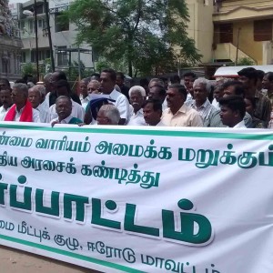 ஈரோடு வீரப்பன்சத்திரம் பேருந்து நிலையம் அருகில் நடைபெற்ற ஆர்ப்பாட்டத்திற்கு, தமிழக விவசாயிகள் சங்க மாவட்டத் தலைவர் திரு. குமாரசாமி தலைமையேற்றார். தமிழ்த் தேசப் பொதுவுடைமைக் கட்சித் தலைமைச் செயற்குழு உறுப்பினர் தோழர் கோ.மாரிமுத்து தொடக்கவுரையாற்றினார். ம.தி.மு.க. முன்னாள் மக்களவை உறுப்பினர் திரு. கணேசமூர்த்தி, அனைத்து வணிகர்கள் சங்கக் கூட்டமைப்பு திரு. சிவநேசன், பாட்டாளி மக்கள் கட்சி மாநிலத் துணைப் பொதுச்செயலர் திரு. மகேந்திரன், மாவட்டச் செயலார் திரு. ஆறுமுகம், இ.பொ.க. மாநிலச் செயற்குழு உறுப்பினர் தோழர் துரை மாணிக்கம், திராவிடர் விடுதலைக் கழகப் பொறுப்பாளர் தோழர் இரத்தினசாமி, தந்தை பெரியார் திராவிடர் கழகப் பொறுப்பாளர் தோழர் குமரகுருபரன், தமிழ்த் தேசிய நடுவம் தோழர் நிலவன், மக்கள் நல்வாழ்வு இயக்க ஒருங்கிணைப்பாளர் திரு. கண.குறிஞ்சி, இளைஞர் ஒருங்கிணைப்பு இயக்க மாவட்டச் செயலாளர் தோழர் தமிழ்ச்செல்வன், தமிழ்த் தேசப் பொதுவுடைமைக் கட்சி பொதுக்குழு உறுப்பினர் தோழர் வெ.இளங்கோவன், கீழ்பவானி விவசாயிகள் நலச்சங்கம் திரு. செ.நல்லசாமி, நாம் தமிழர் கட்சி மாவட்ட மகளிரணித் தலைவி தோழர் குமுதவல்லி, இயற்கை வேளாண்மைக் கூட்டமைப்பு திரு. அறச்சலூர் செல்வம், தமிழ்நாடு விவசாயிகள் சங்க மாநிலத் துணைத் தலைவர் திரு. துளசிமணி, திரு. முனுசாமி, தற்சார்பு உழவர் இயக்கத் தலைவர் திரு. கி.வெ.பொன்னையன், புரட்சிகர இளைஞர் முன்னணித் தோழர் இரவி ஆகியோர் கண்டன உரையாற்றினர்.