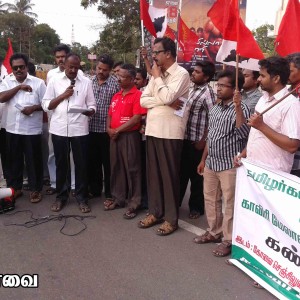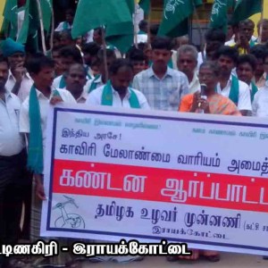 கிருட்டிணகிரி மாவட்டம் – இராயக்கோட்டை அஞ்சல் நிலையம் எதிரில் நடைபெற்ற ஆர்ப்பாட்டத்திற்கு, தமிழக உழவர் முன்னணி நடுவண் குழு உறுப்பினர் தோழர் துருவாசன் தலைமையேற்றார். தமிழ்த் தேசப் பொதுவுடைமைக் கட்சித் தோழர் முருகப்பெருமாள் தொடக்கவுரையாற்றினார். மகளிர் ஆய நடுவண் குழு உறுப்பினர் தோழர் மேரி, தமிழக உழவர் முன்னணி கொப்பக்கரை கிளைச் செயலாளர் தோழர் இராசேந்திரன், முகலூர் கிளைச் செயலாளர் தோழர் வெங்கட்ராமன், சசலப்பட்டி கிளைச் செயலாளர் தோழர் மாதேசு, கொட்டாயூர் கிளைச் செயலாளர் தோழர் சேட்டு, பெரியத்தோட்டம் கிளைச் செயலாளர் தோழர் சகாதேவன், போனேரி அக்ரகாரம் கிளைச் செயலாளர் தோழர் சுப்பிரமணி, த.தே.பொ.க. தோழர் சுப்பிரமணி, இலிங்கணம்பட்டி தோழர் மு.வேலாயுதம் ஆகியோர் கண்டன உரையாற்றினர்.