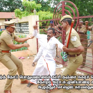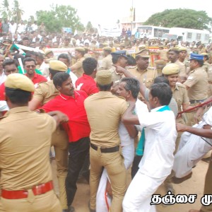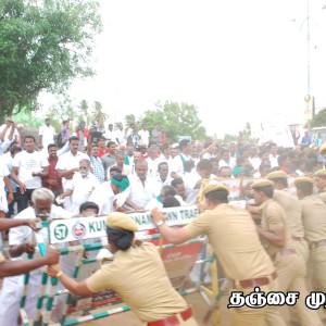 தஞ்சையில், மருத்துவக் கல்லூரி சாலை – பாலாசி நகரில் இயங்கும் இந்திய அரசின் உற்பத்தி வரித்தண்டல் அலுவலகத்தை முற்றுகையிடும் போராட்டம் காவிரி உரிமை மீட்புக் குழுவின் ஒருங்கிணைப்பாளரும், தமிழ்த் தேசப் பொதுவுடைமைக் கட்சித் தலைவருமான தோழர் பெ.மணியரசன் தலைமையில் நடைபெற்றது.