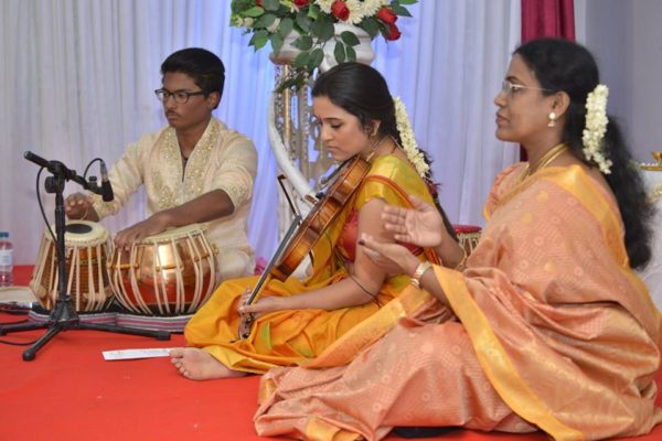 இசை நிகழ்ச்சியில் பக்கவாத்தியக் கலைஞர்கள் அவையோரை வியப்பில் ஆழ்த்தினர். இனிமேல் பெருங்கலைஞர்களை அரங்கேற்றத்திற்கு அழைக்கவேண்டிய தேவை இல்லை என்பதை மேடையிலிருந்த குட்டிக் கலைஞர்கள் உறுதிப்படுத்தினர்.