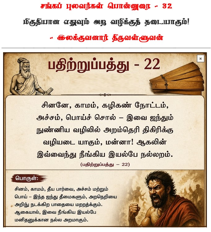 மிகுதியான எதுவும் அற வழிக்குத் தடையாகும்!: சங்கப் புலவர்கள் பொன்னுரை – 32 – இலக்குவனார் திருவள்ளுவன்
