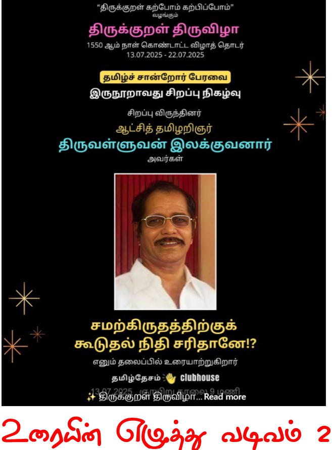 பேராய கட்சியான காங்கிரசில் தொடங்கி தொடர்ந்து கொண்டே இருக்கிறது .ஆக, சமற்கிருத நிதி ஒதுக்கீடு என்பது இங்கே தொடர்ந்து வந்து கொண்டே இருக்கிறது. அப்பொழுதெல்லாம் இந்தக் கட்சிகள் எங்கே தூங்கிக் கொண்டு இருந்தன? ஒன்று இவர்கள் தெரிந்தே செய்கிறார்கள் என்றால் இவர்களுக்கு எதையும் சொல்லத் தகுதி இல்லை என்று தான் சொல்ல வேண்டும். பிறரது முதுகிலே உள்ள அழுக்கைச் சுட்டிக்காட்டுகிற நாம், சுட்டிக் காட்டிய கைகளில் மண்டிக் கிடக்கிற அழுக்கை நாம் பார்க்க வேண்டும். நாம் தமிழுக்காக என்ன செய்தோம் என்று பார்க்க வேண்டும் .அப்படிப் பார்க்கும் பொழுது இப்பொழுது நான் பல திட்டங்களைச் சொன்னேன் அல்லவா, அதை விடப் பல பெரிய திட்டங்கள் இருக்கின்றன. திட்டங்கள் மட்டுமல்ல. எதற்காகச் சொல்கிறேன் தெரியுமா? சமற்கிருதம் தொன்மையான மொழி என்பது பொய், பிற மொழிகளுக்குச் சமற்கிருதம் தாய் மொழி என்பதும் பொய், சமற்கிருதம் தேவ மொழி என்பதும் பொய். இவ்வாறு பொய்களைப் பரப்பிக்கொண்டு பொய்யான தகவல்களுக்காக – அத்தகவல்களின் அடிப்படையிலான திட்டங்களுக்காக –  நிதி ஒதுக்கீடு வழங்குகிறார்கள்.